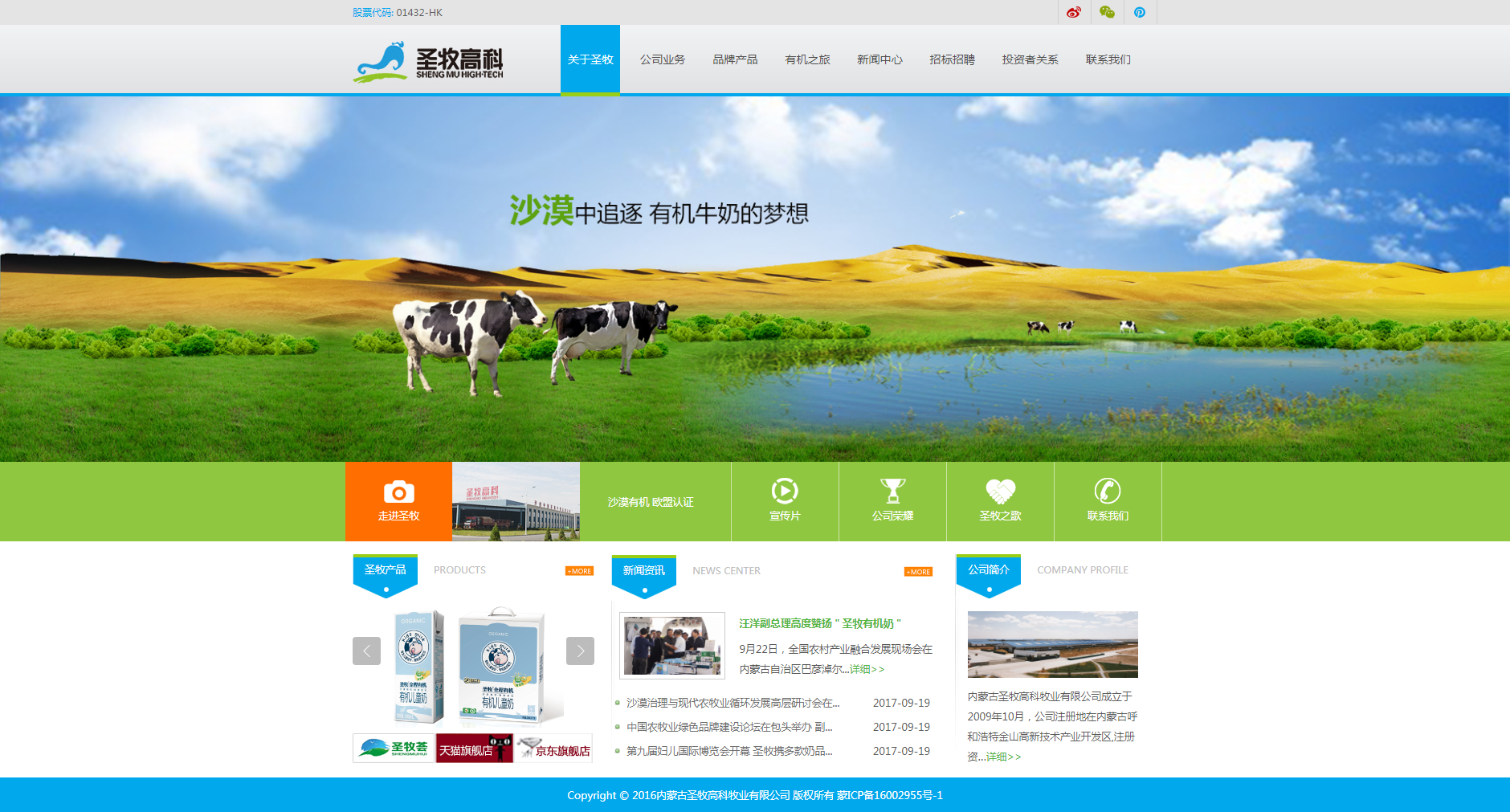 內蒙古圣牧高科牧業有限公司成立于2009年10月,公司注冊地在內蒙古呼和浩特金山高新技術產業開發區,注冊資本為柒億叁仟捌佰柒拾萬元人民幣(7.3870億元)。 牧公司是沙草產業踐行典范,防風固沙、改造沙漠,種草養牛、牛糞還田,形成了產業治沙的可持續、可循環發展新模式。