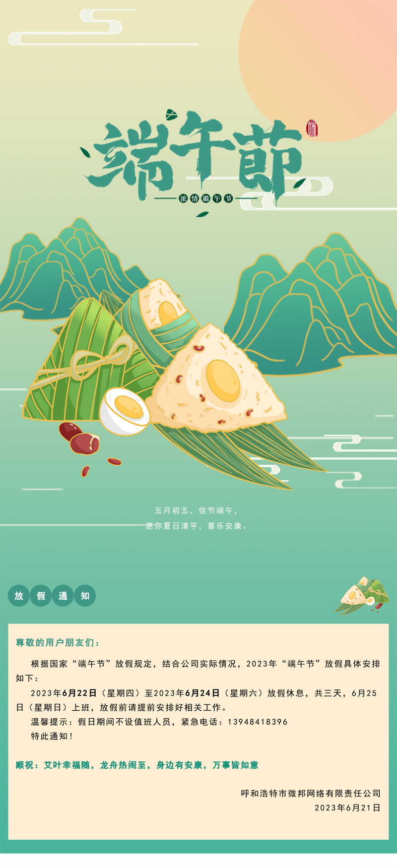 端午節放假通知